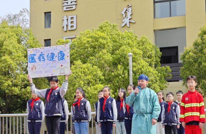 晨會時小小安全員們進行安全常識宣講,606班的同學們不僅預備了精巧且主題清晰的宣揚展板,還扮演了消防員、警察等角色,講解了各方面的安全常識,提高了全體師生的自我保護意識和技術。